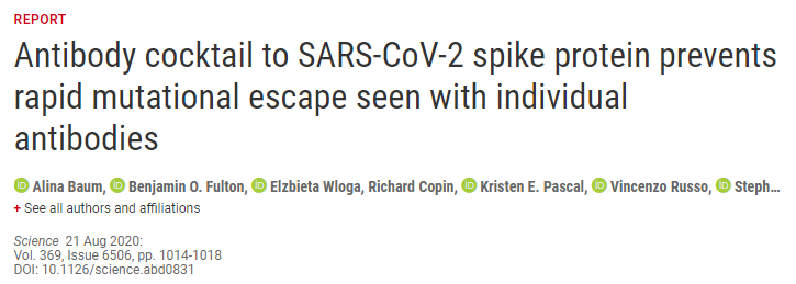 SARS-CoV-2刺突蛋白抗体鸡尾酒可防止单个抗体出现的快速突变逃逸