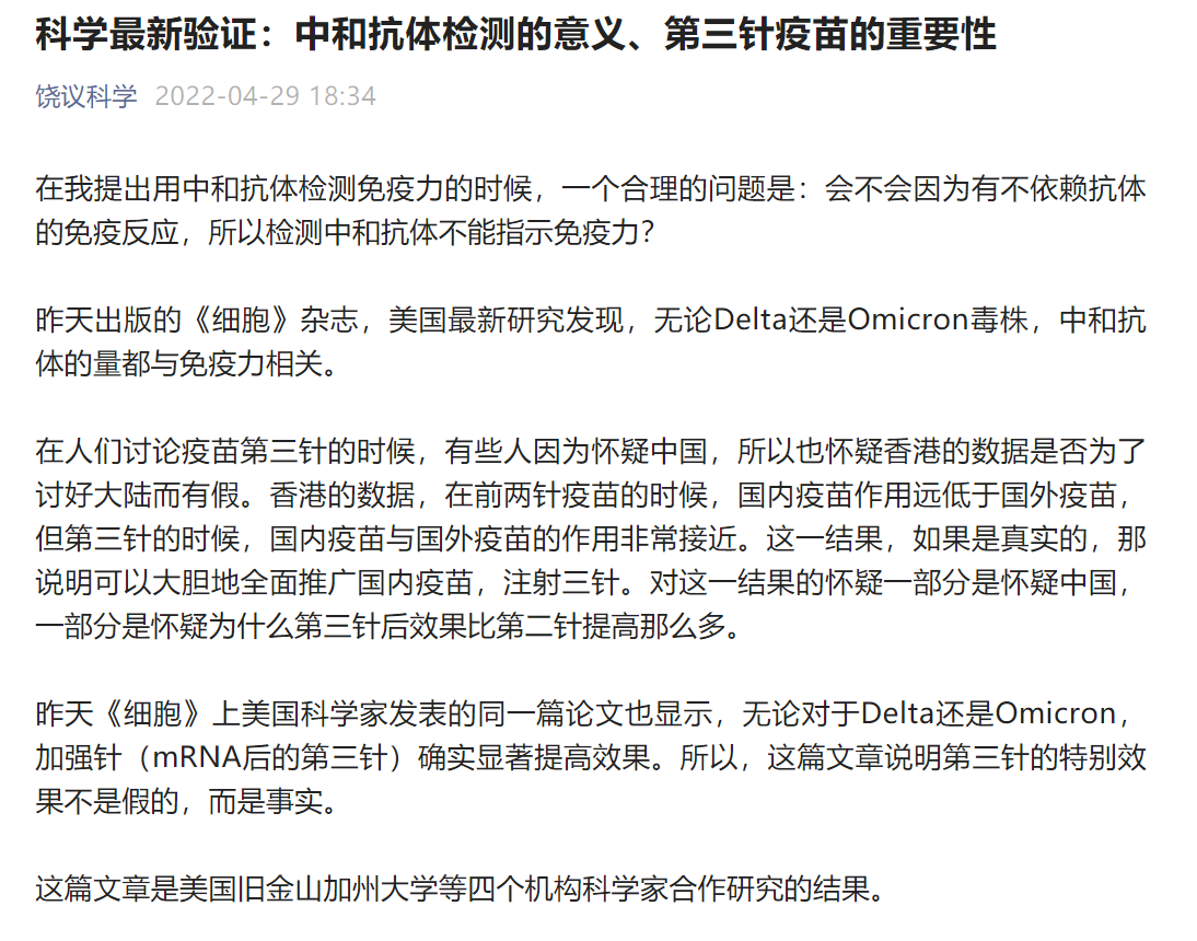 饶议科学——科学最新验证:中和抗体检测的意义、第三针疫苗的重要性