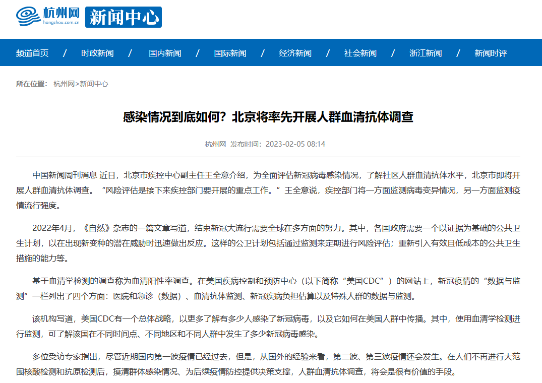 感染情况到底如何?北京将率先开展人群血清抗体调查
